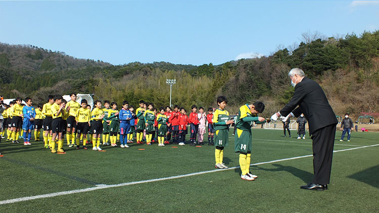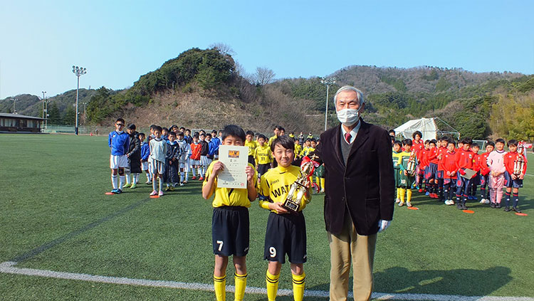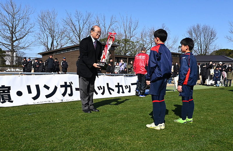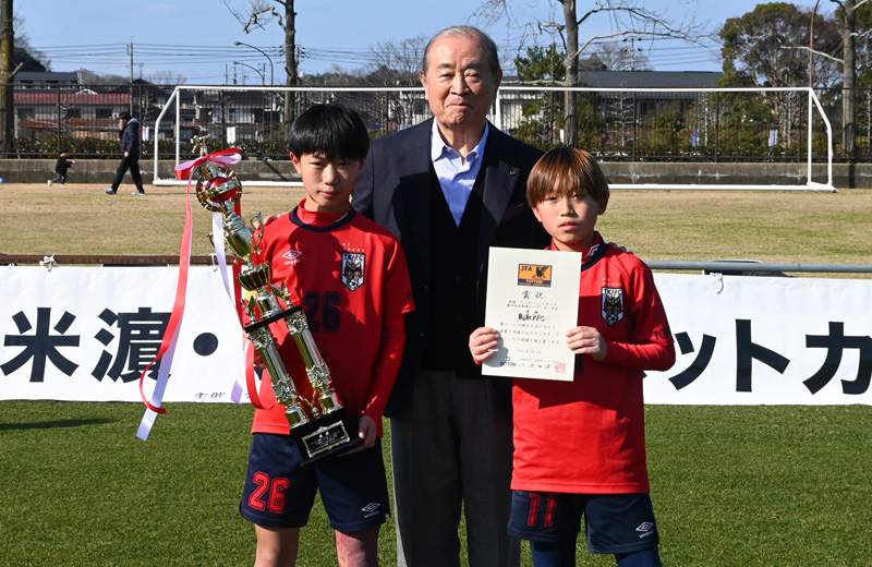 代表理事の米濵より、「未来のオリンピック選手やプロサッカー選手がでることを願って、エールを送ります」と激励の言葉を贈り、3位以上のチームへのトロフィーを手渡しいたしました。